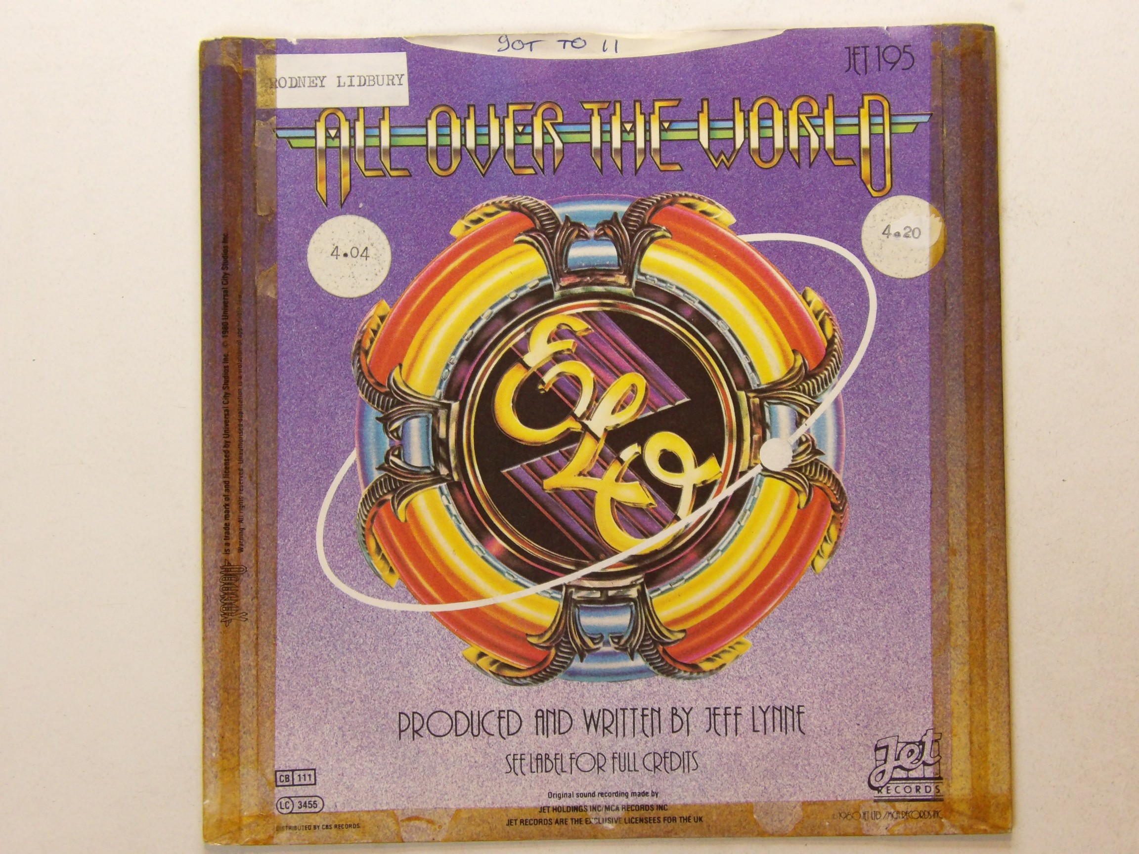 Electric Light Orchestra: All Over the World 7″ ELO Taped Pic sleeve